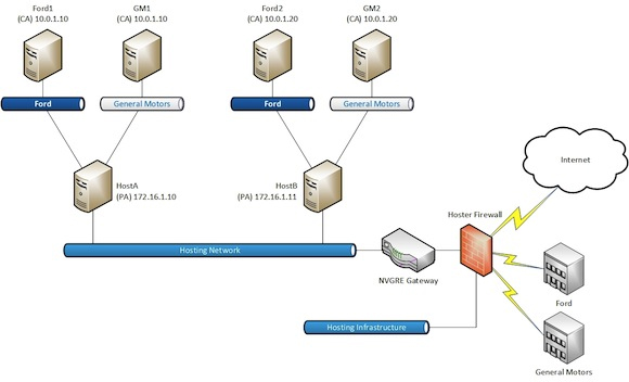 • Host Sub Companies on the Same Server using overlapping Subnets but separated by different Virtual Networks and Virtualisation Gateway keeping data separate between both Companies as the Servers are unaware of each other